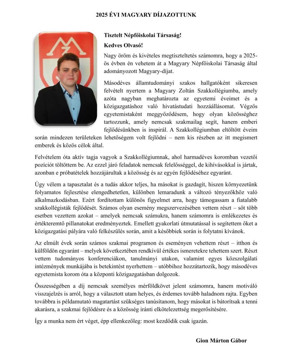Magyary Díjazottunk