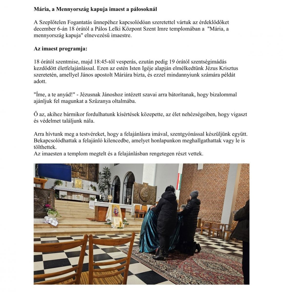 Mária est a pálos templomban