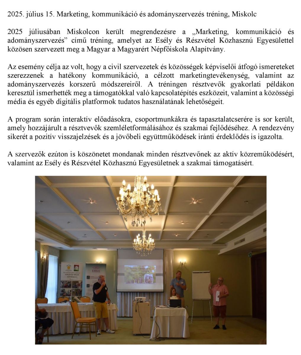 Marketing, kommunikáció és adományszervezés tréning, Miskolc