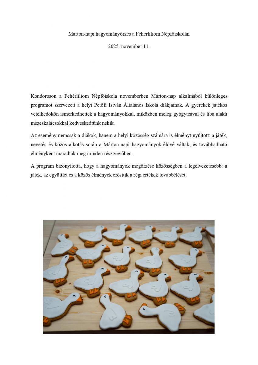 Márton-napi hagyományőrzés a Fehérliliom Népfőiskolán