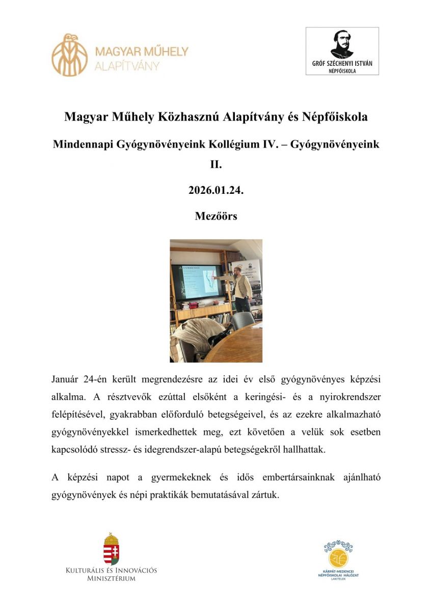 További információért látogassanak el a mezőörsi Magyar Műhely Közhasznú Alapítvány - gr. Széchenyi István Népfőiskola honlapjára.
