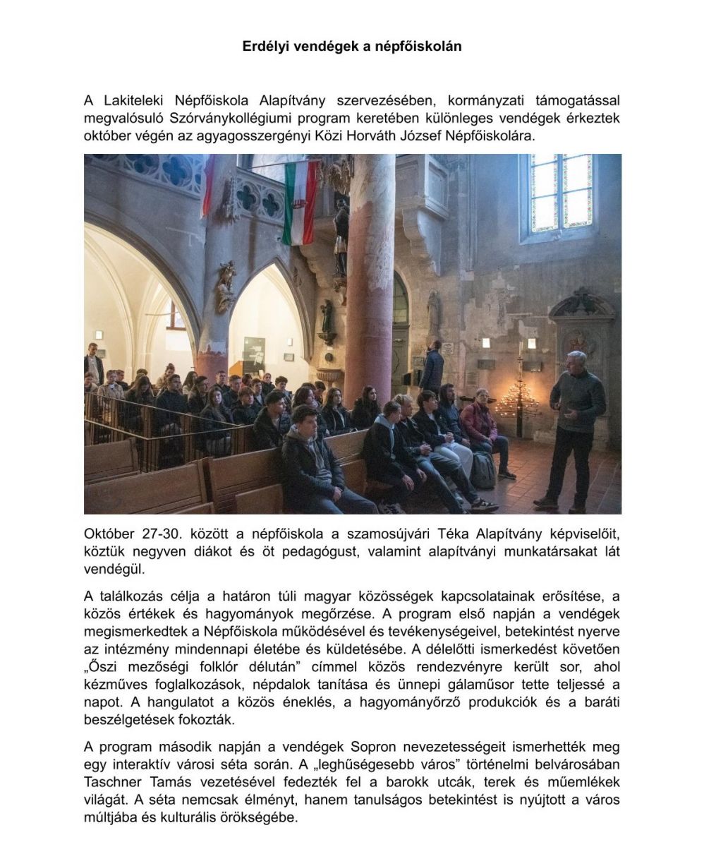 További információért látogassanak el az agyagosszergényi Közi Horváth József Népfőiskola honlapjára.