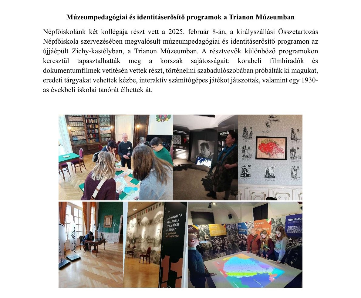 Múzeumpedagógiai és identitáserősítő programok a Trianon Múzeumban