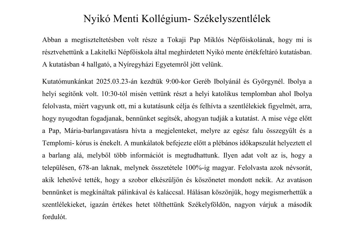 Nyikó mente értékfeltáró kutatásban vett részt a Tokaji Pap Miklós Népfőiskola