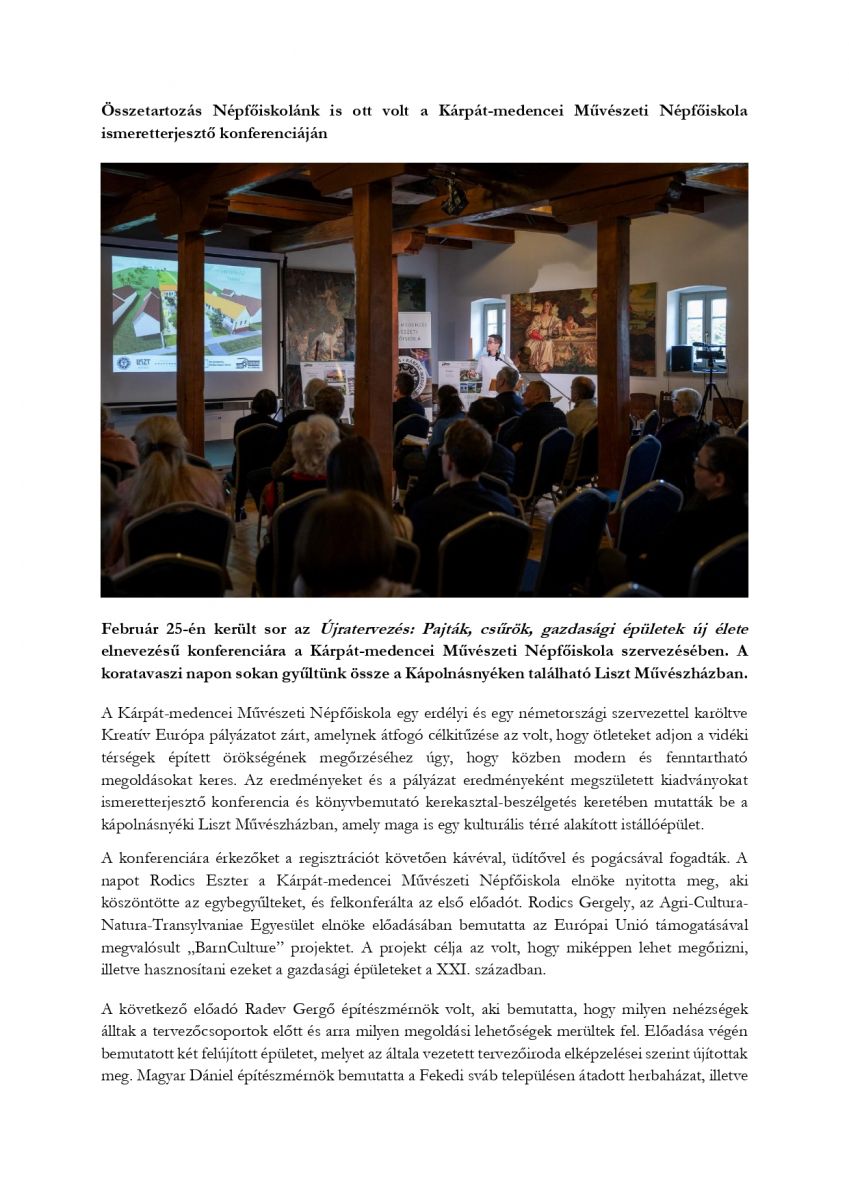 Összetartozás Népfőiskolánk is ott volt a Kárpát-medencei Művészeti Népfőiskola ismeretterjesztő konferenciáján