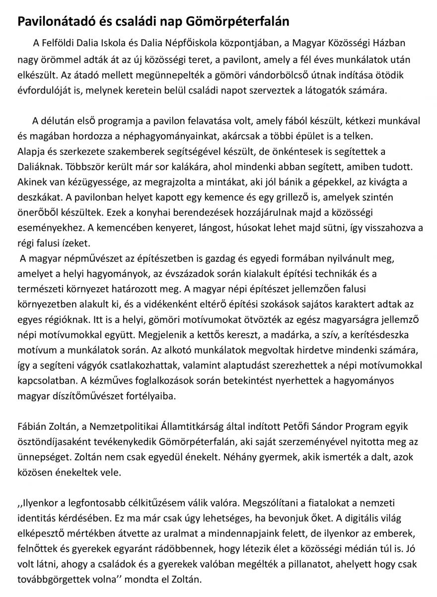 Pavilonátadó és családi nap Gömörpéterfalán