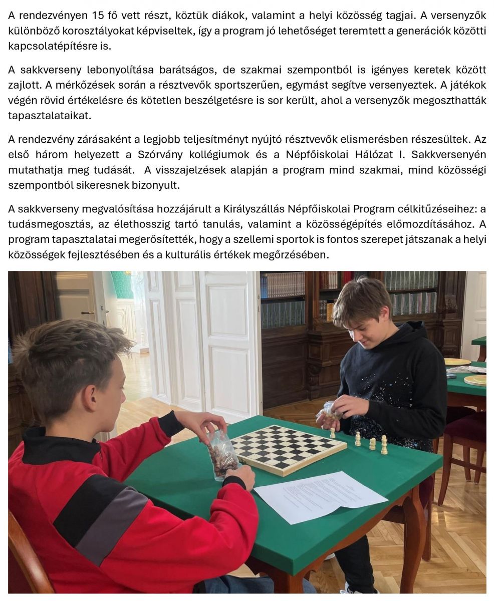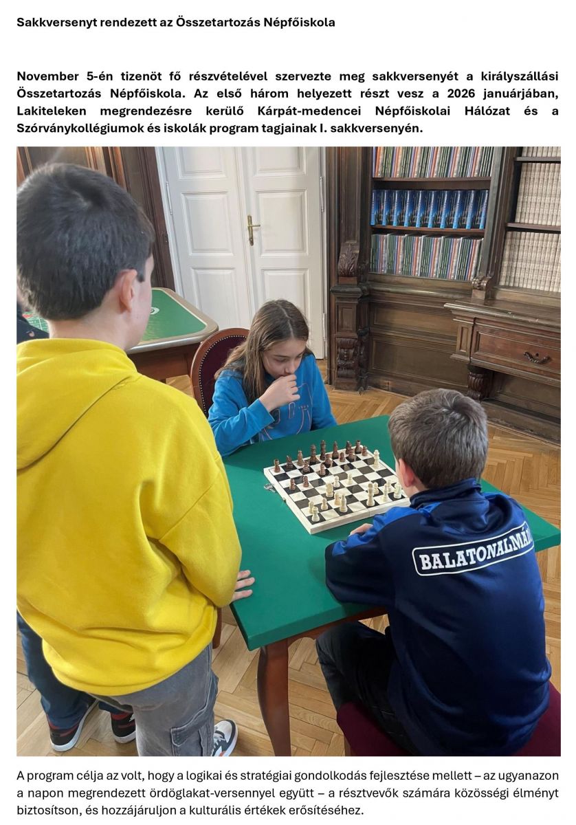 Sakkversenyt rendezett az Összetartozás Népfőiskola