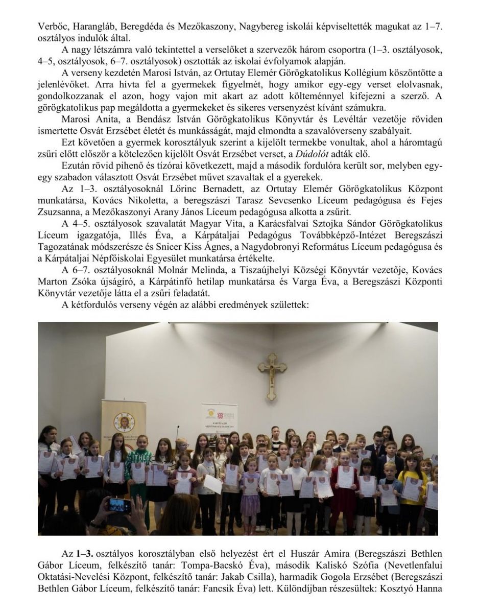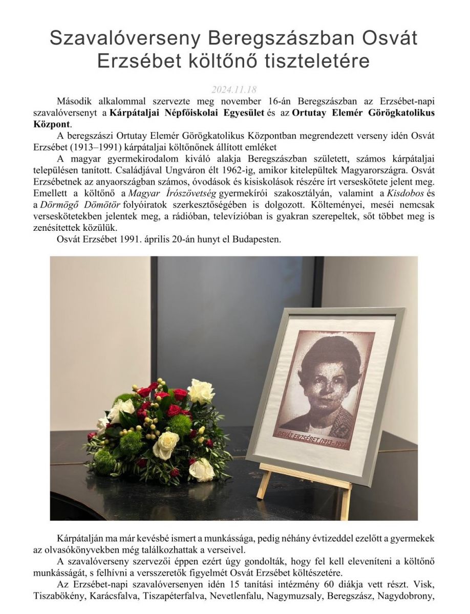 Szavalóverseny Beregszászban Osvát Erzsébet költőnő tiszteletére