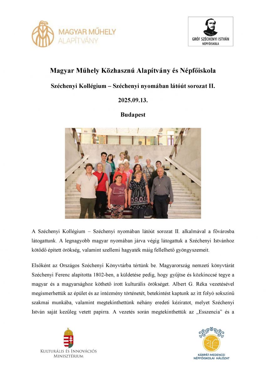 Széchenyi Kollégium – Széchenyi nyomában látóút sorozat II.
