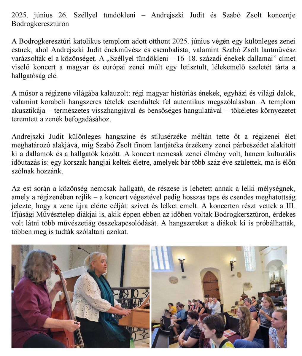 Széllyel tündökleni – Andrejszki Judit és Szabó Zsolt koncertje Bodrogkeresztúron