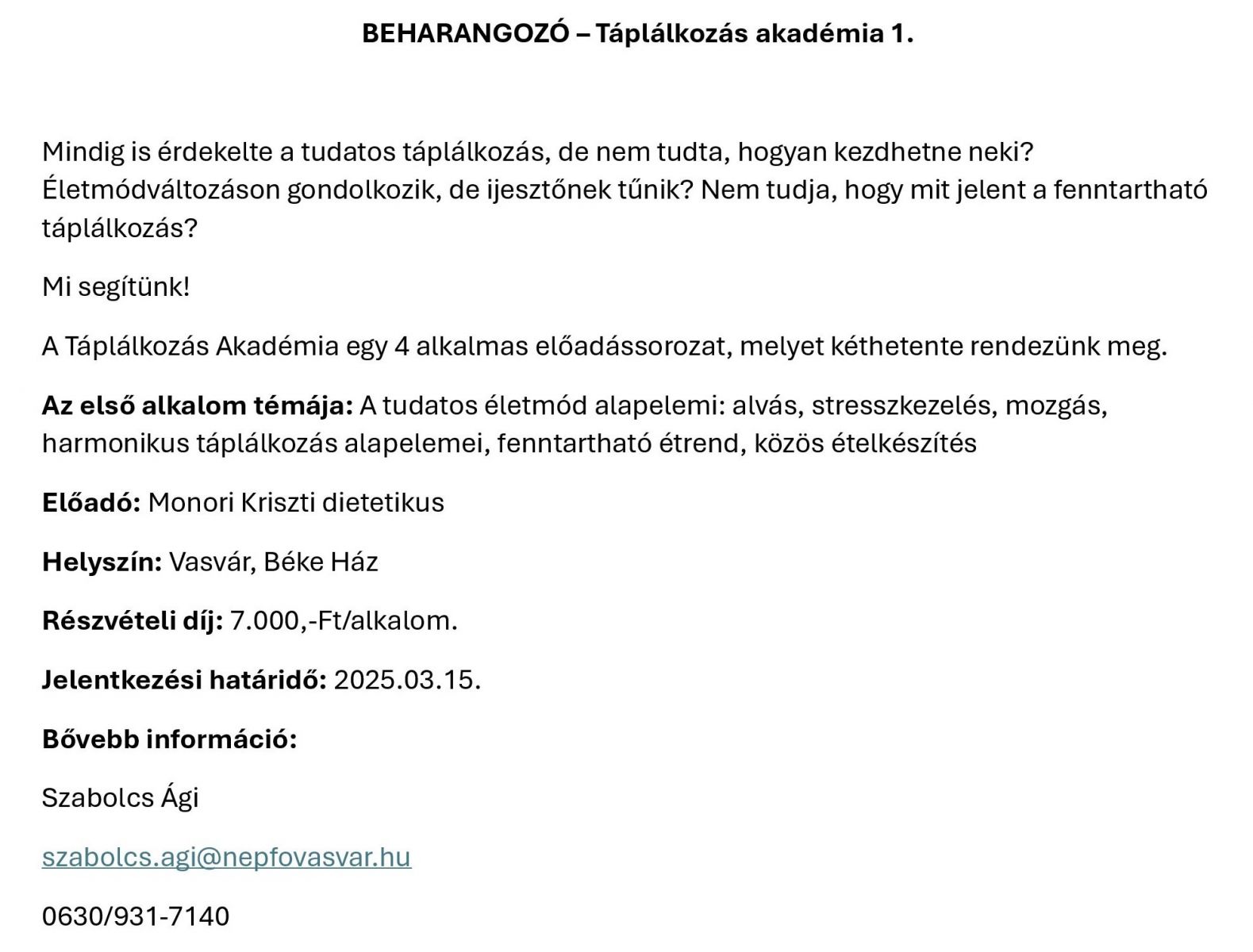 Táplálkozás akadémia 1.