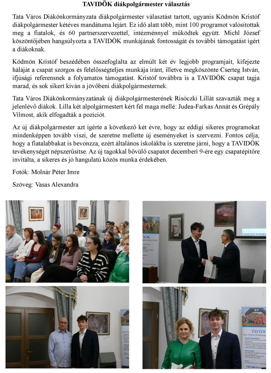 TAVIDÖK diákpolgármester választás