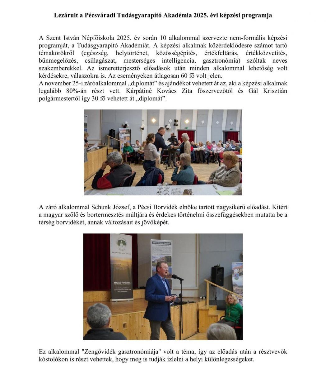 További információért látogassanak el a pécsváradi Kárpáti Érték Közösség Népfőiskola Közhasznú Alapítvány honlapjára.