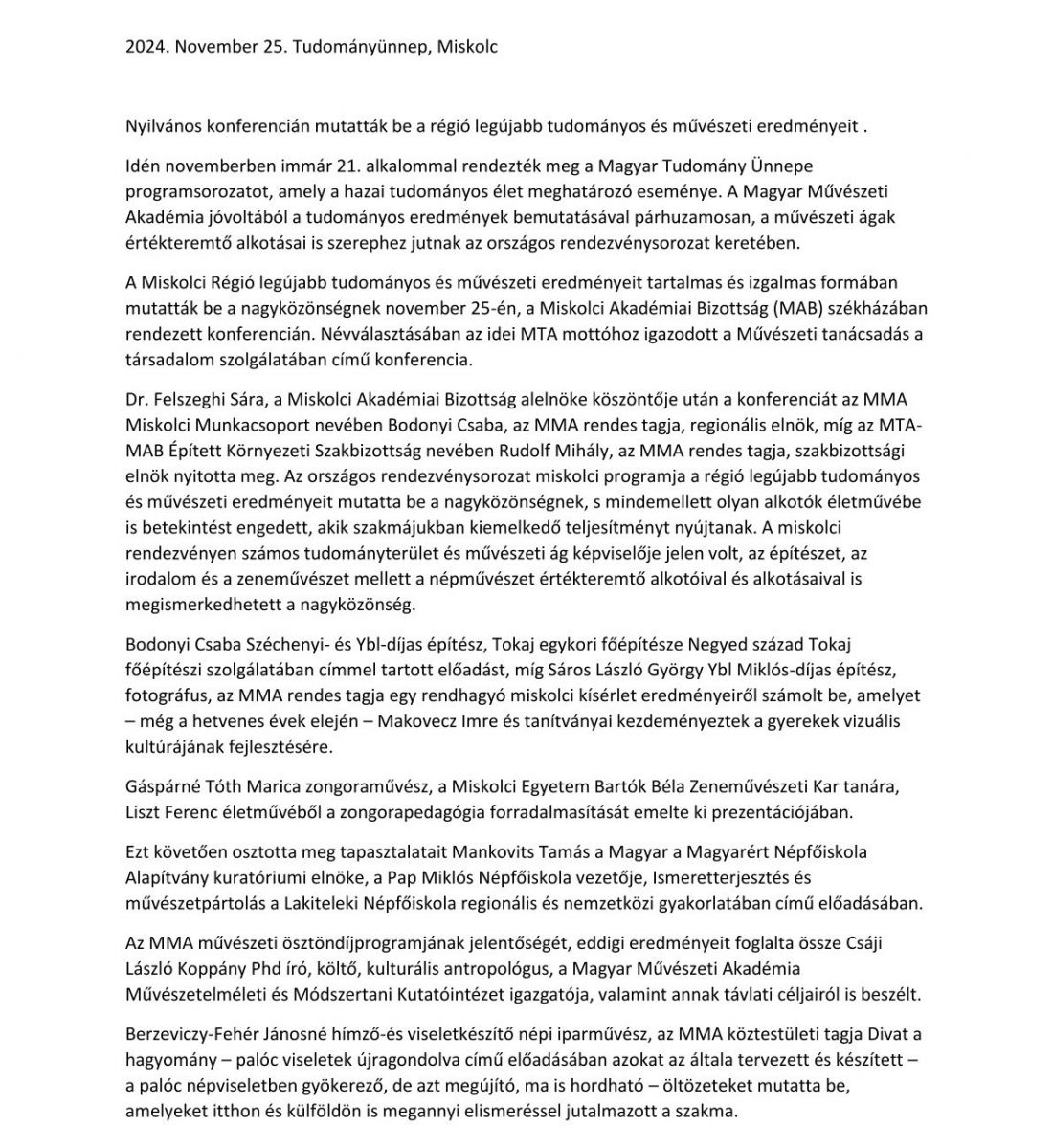 Tudományünnep Miskolcon, Mankovits Tamás bemutatója a Kárpát- medencei Népfőiskolai Hálózatról