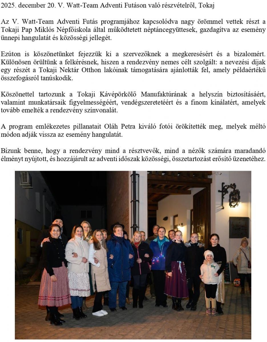 V. Watt-Team Adventi Futáson való részvételről