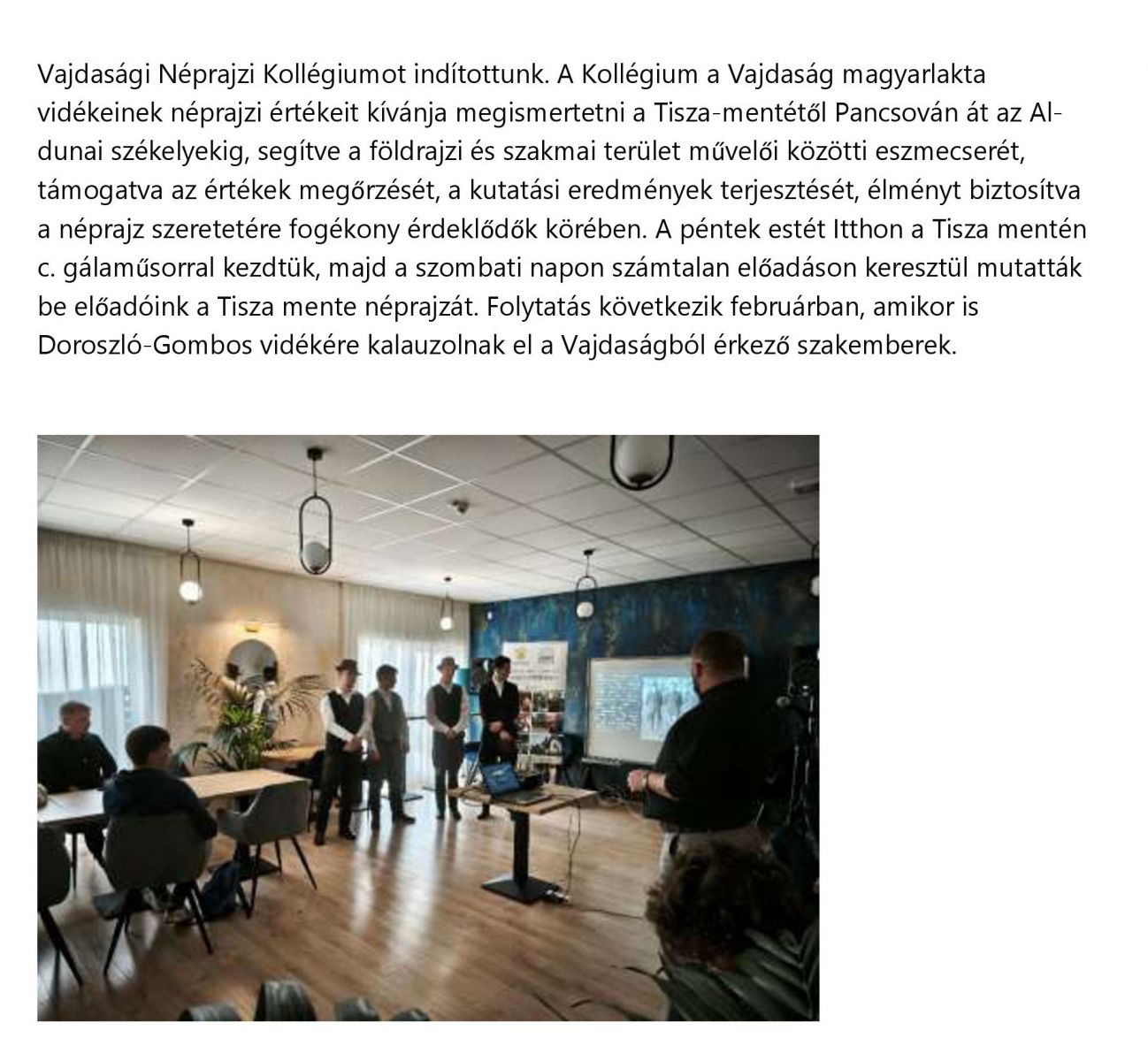 Vajdasági Néprajzi Kollégiumot indítottunk