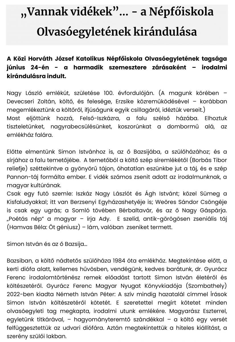 „Vannak vidékek”... - a Népfőiskola Olvasóegyletének kirándulása