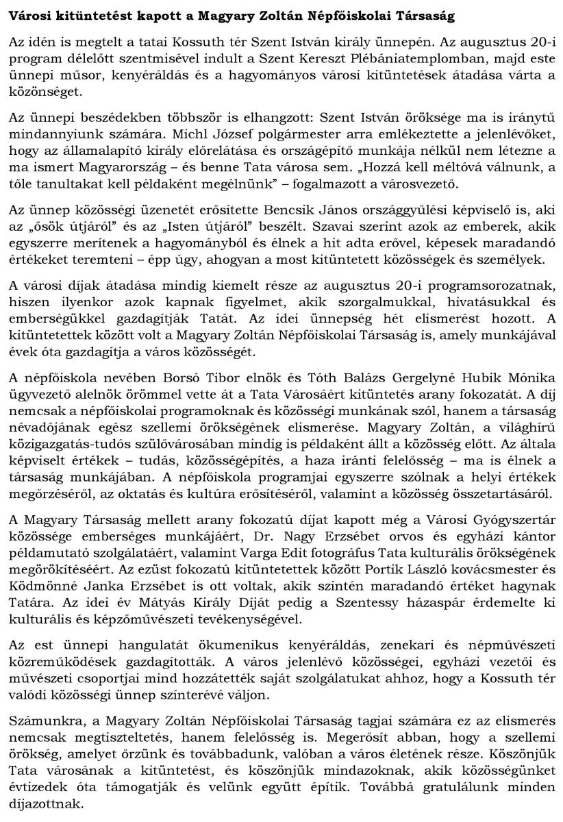 Látogasson el a tatai Magyary Zoltán Népfőiskolai Társaság weboldalára.