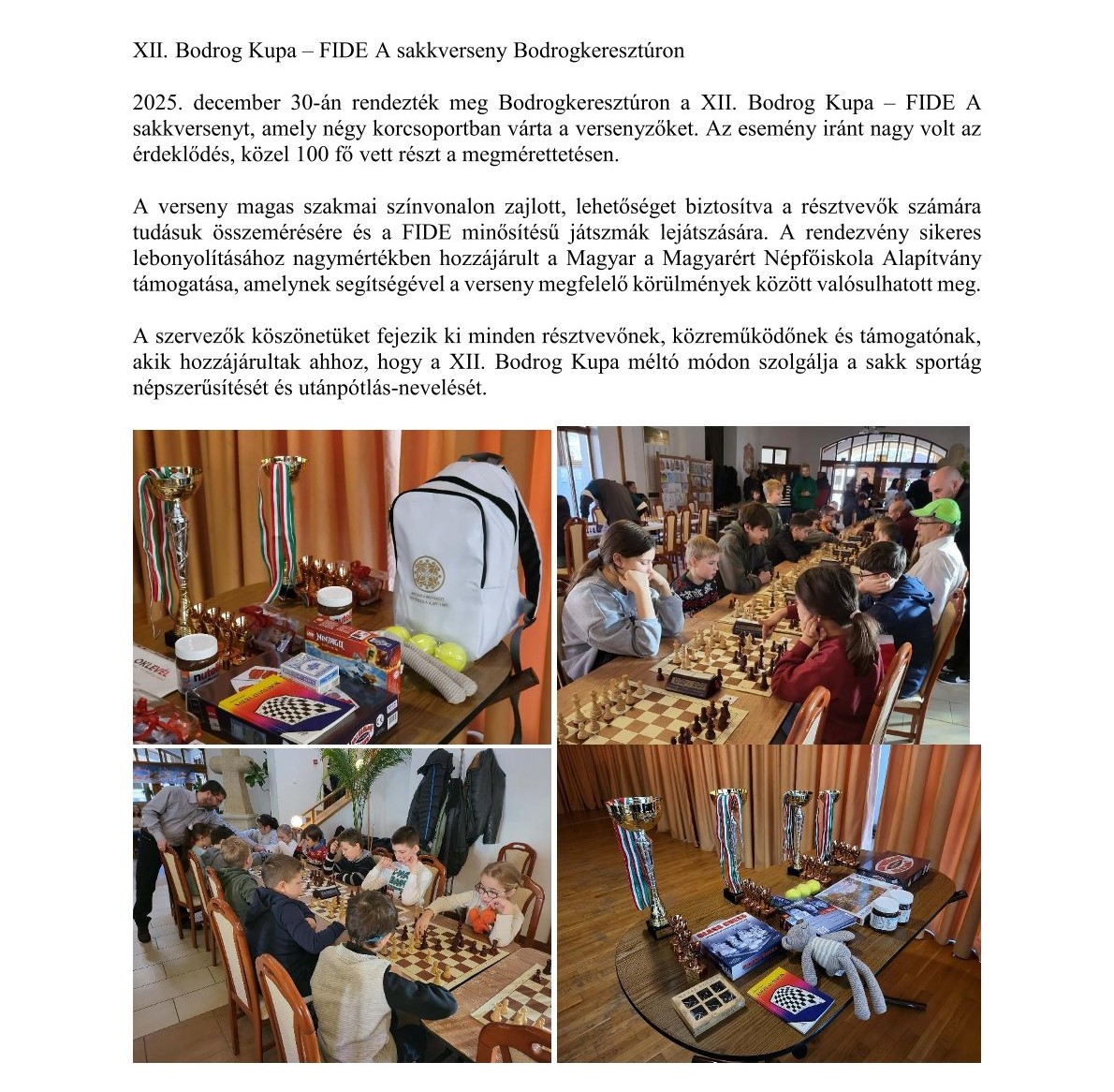 XII. Bodrog Kupa – FIDE A sakkverseny Bodrogkeresztúron