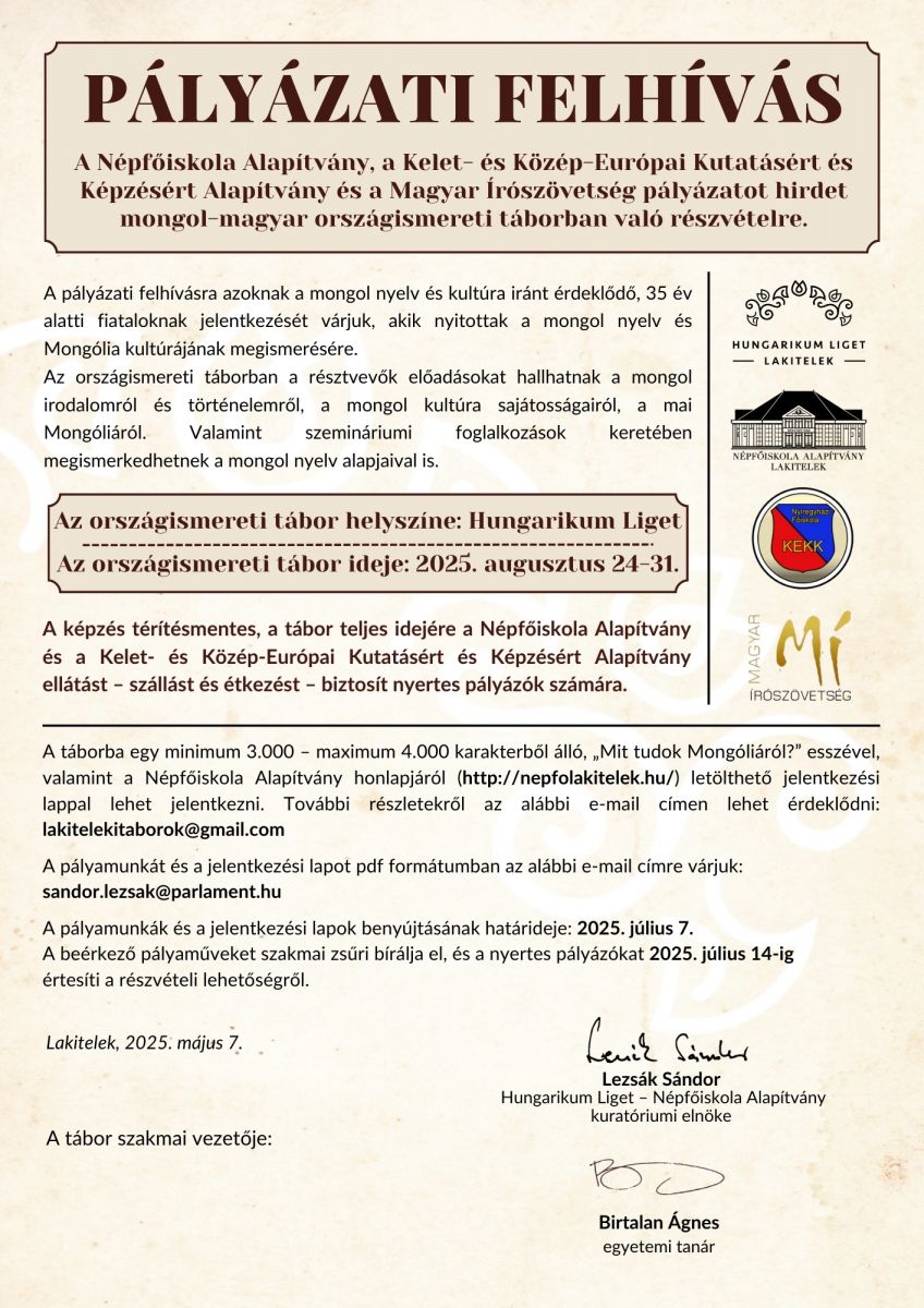 Mongol-magyar országismereti tábor 2025. - FELHÍVÁS