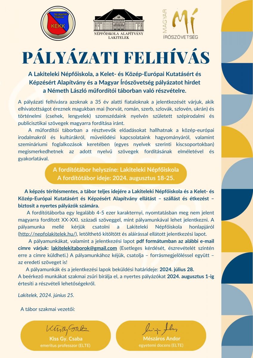 Németh László műfordító tábor - 2024. augusztus 18 - 25. (meghosszabbodott a jelentkezési határidő)