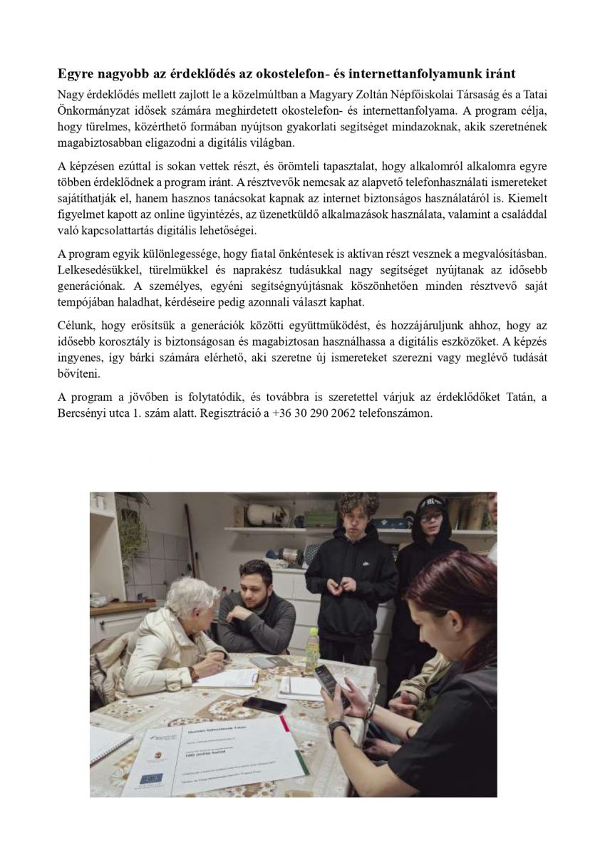 Egyre nagyobb az érdeklődés az okostelefon- és internettanfolyamunk iránt