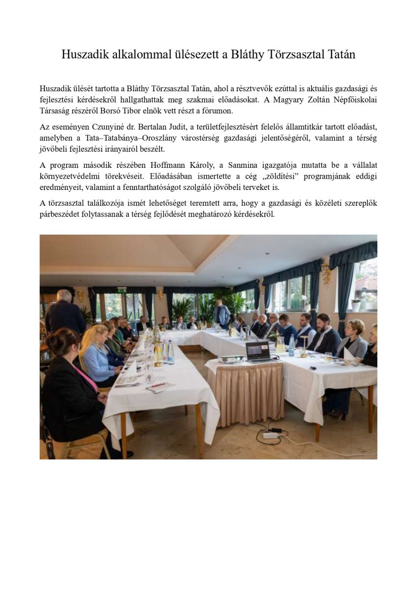 Huszadik alkalommal ülésezett a Bláthy Törzsasztal Tatán