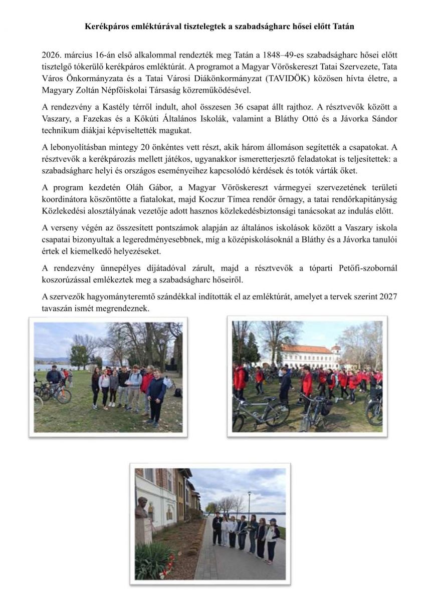 Kerékpáros emléktúrával tisztelegtek a szabadságharc hősei előtt Tatán
