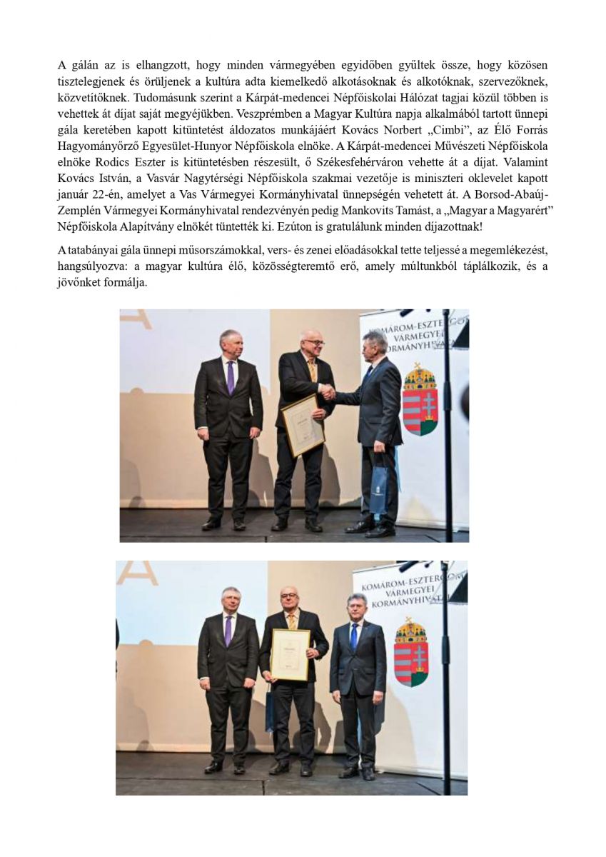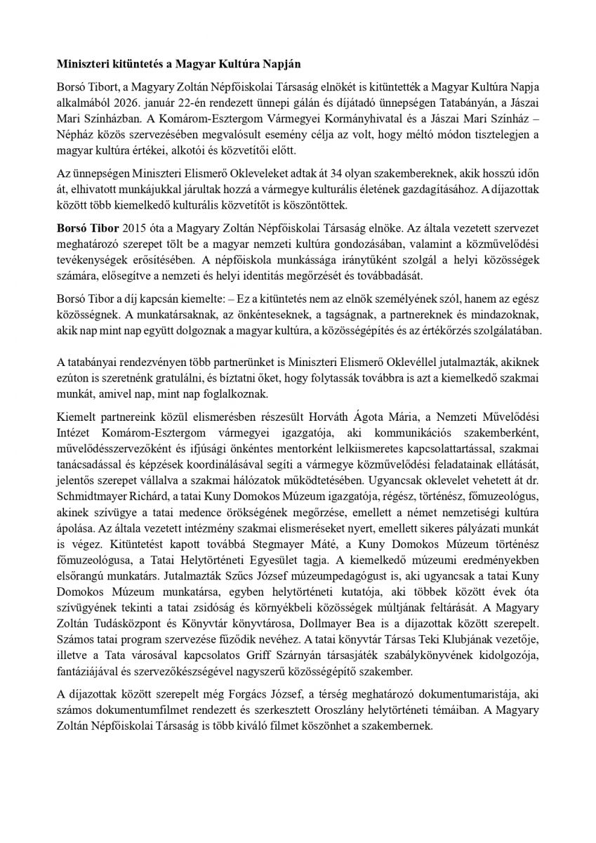 Miniszteri kitüntetés a Magyar Kultúra Napján