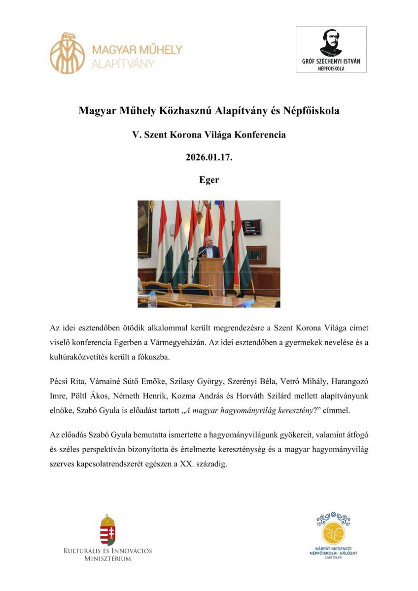 Szabó Gyula előadása az V. Szent Korona Világa Konferencián