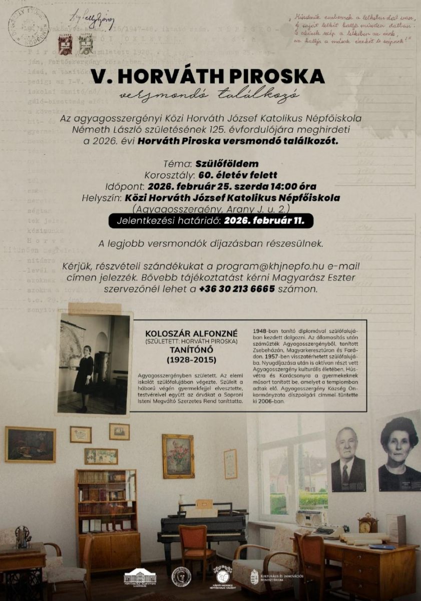 További információért látogassanak el az agyagosszergényi Közi Horváth József Népfőiskola honlapjára.